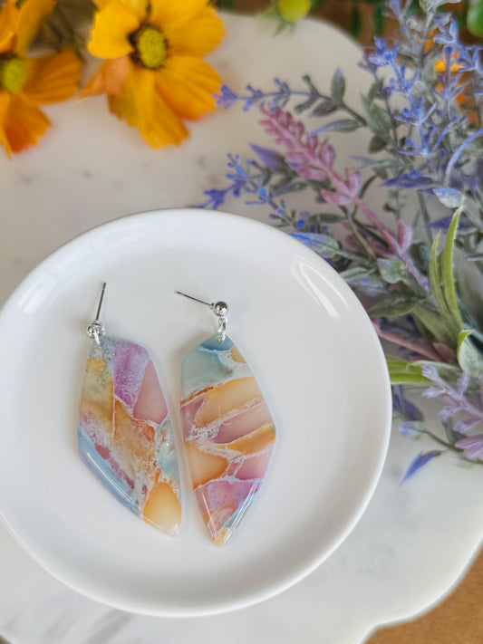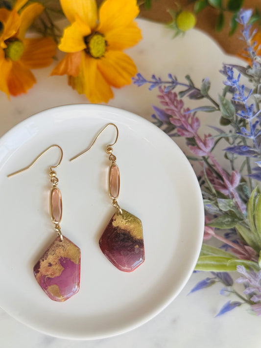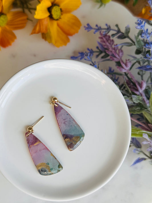 Moss Alcohol Ink - Abstract Pebble & Gem Earring