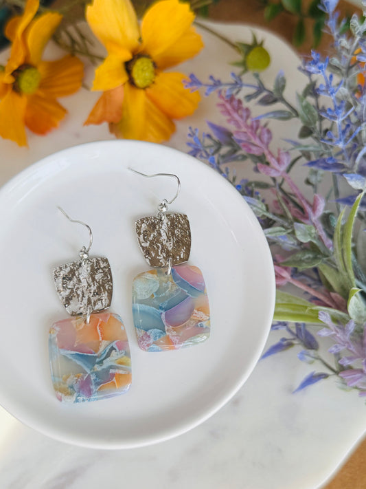 Moss Alcohol Ink - Large Rectangle & Abalone Shell Earring