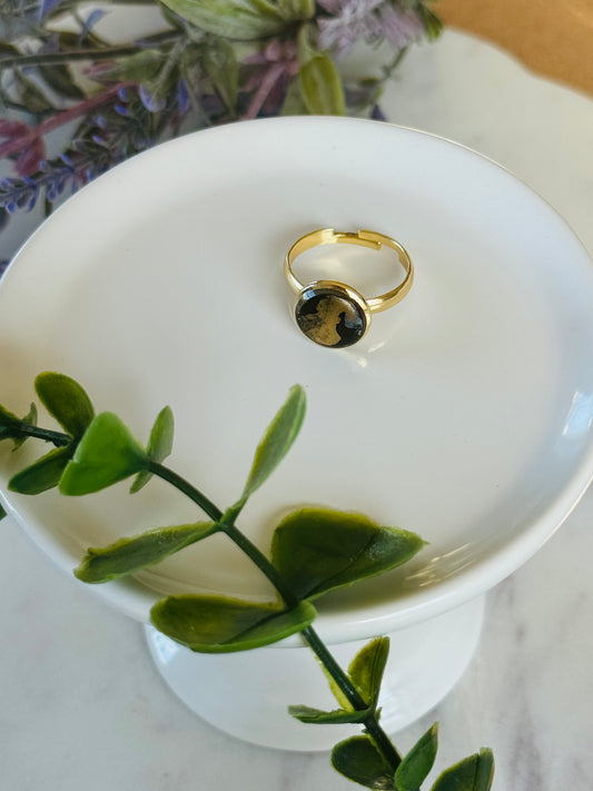 Moss Alcohol Ink - Green & Gold Round Adjustable Ring