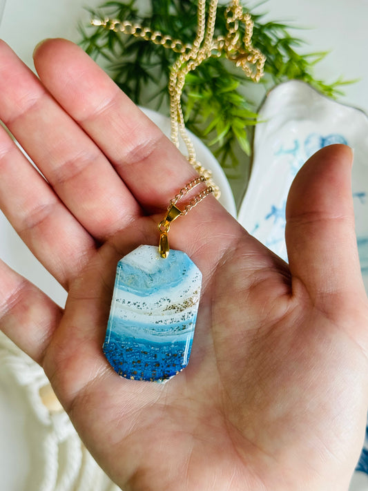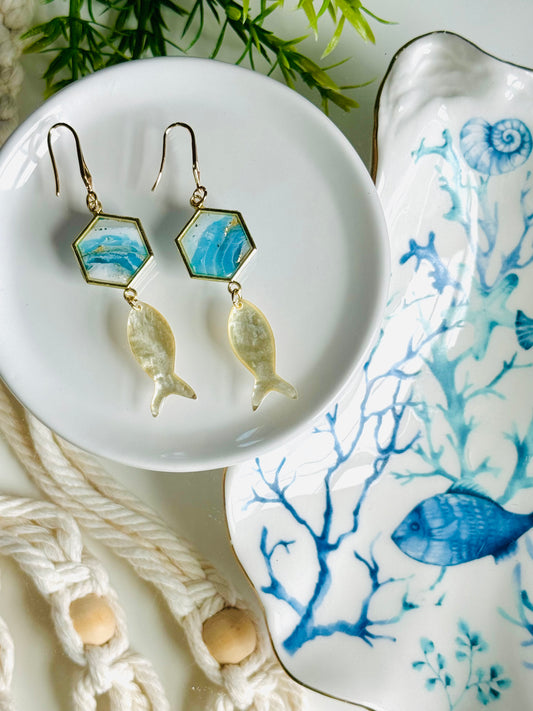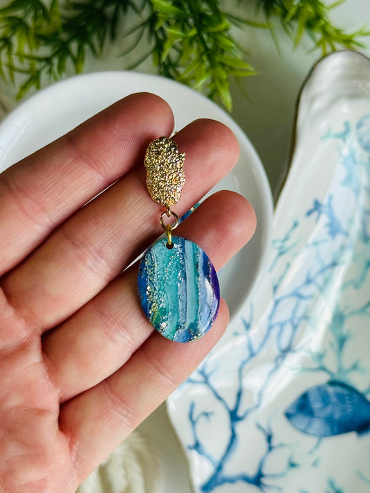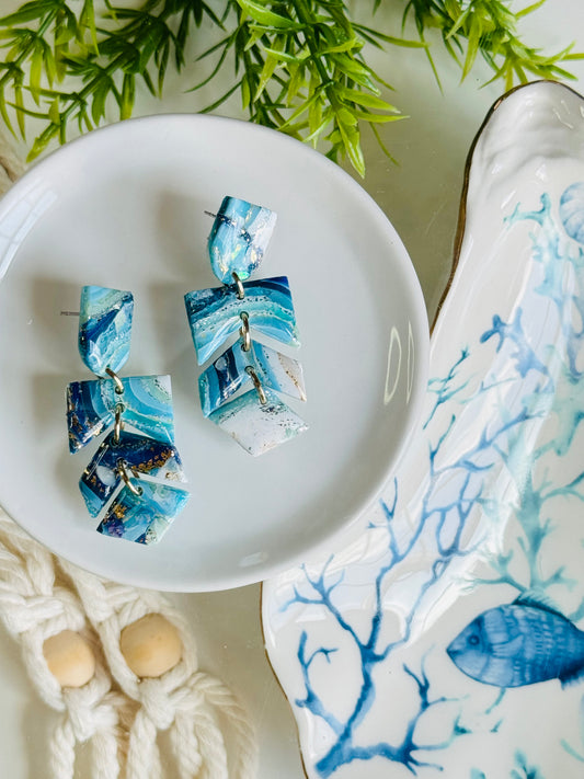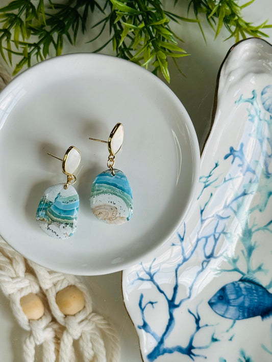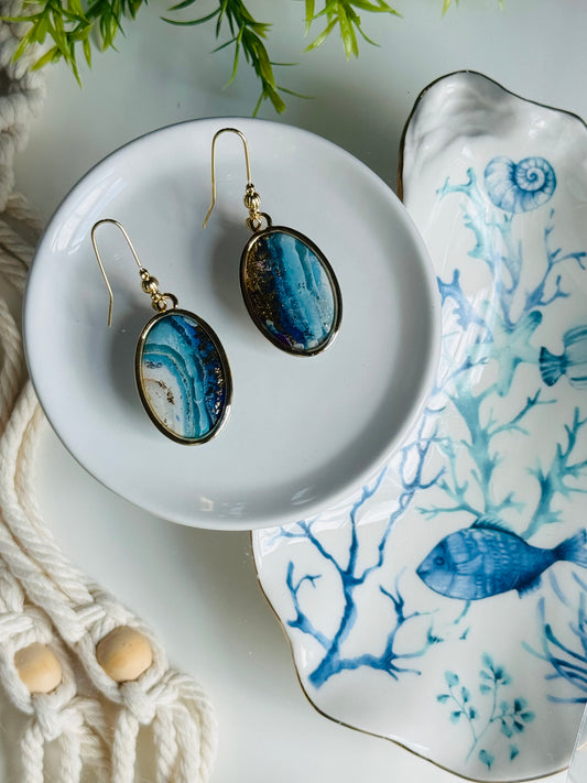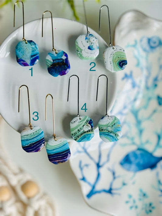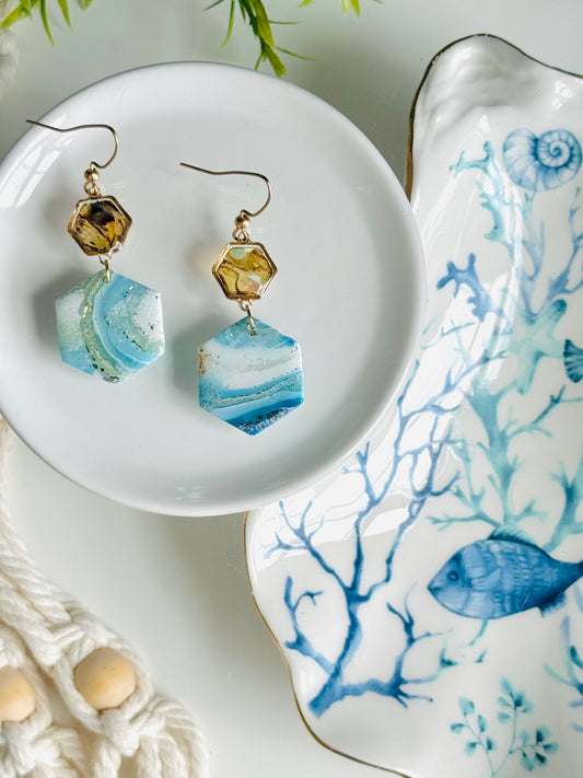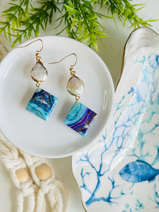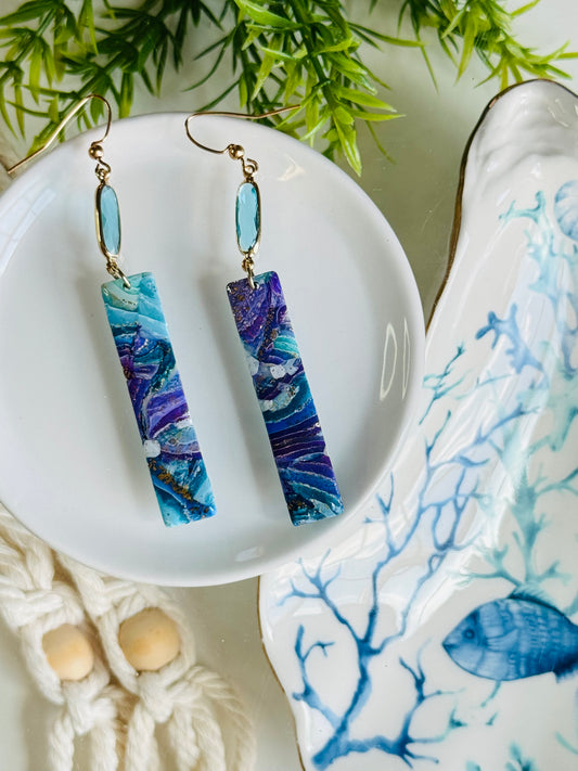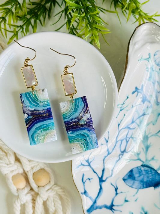 Water Agate - "Peyton" & Blue Glass Gem Earring