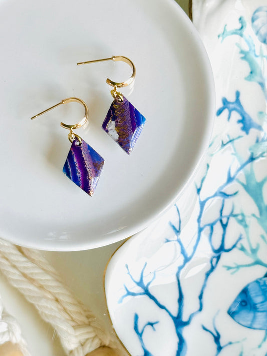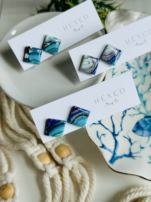 Winter Marble - Diamond Shaped Earring on Ball Post