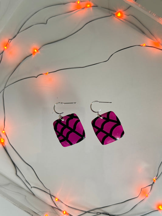Beetlejuice - Pink Spiderweb Rounded Earring