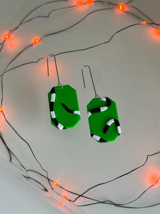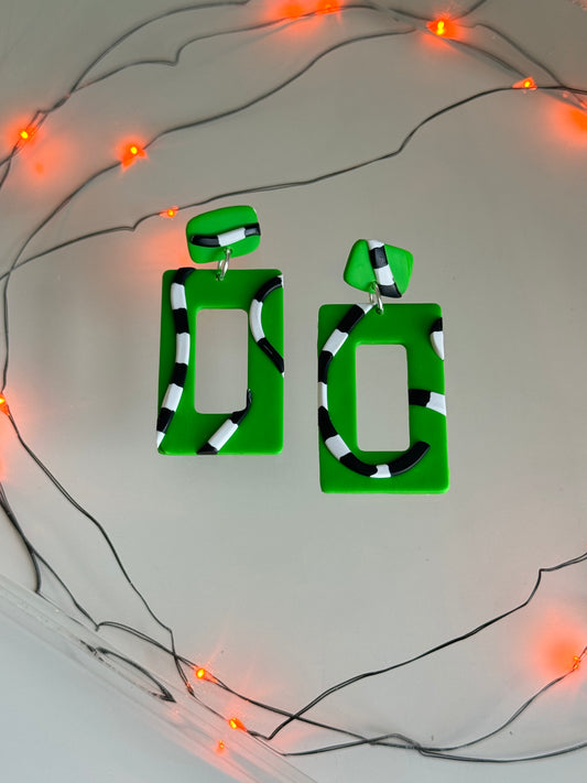 Beetlejuice - Lime Green Rectangle Sandworm Earring