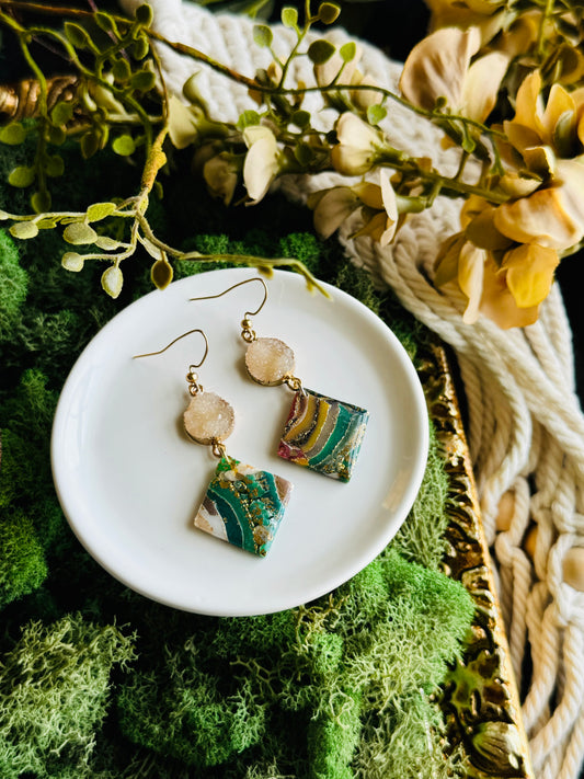Earth Agate - Rounded Rectangle & Vintage Faux Opal
