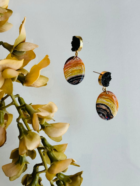 Fire Agate - Trapezoid and Black Ring Post Earring