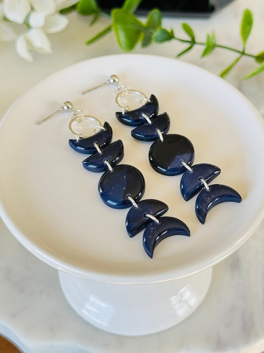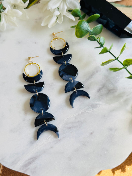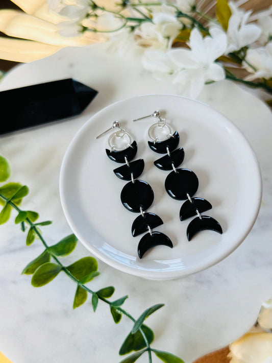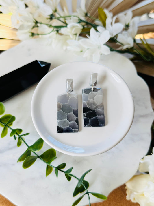 Dark Moon Stained Glass - Long Rectangle Earrings