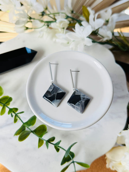 Dark Moon Stained Glass - Diamond & Bar Post Earring