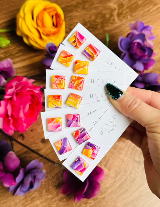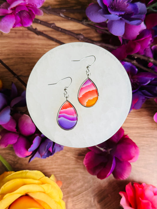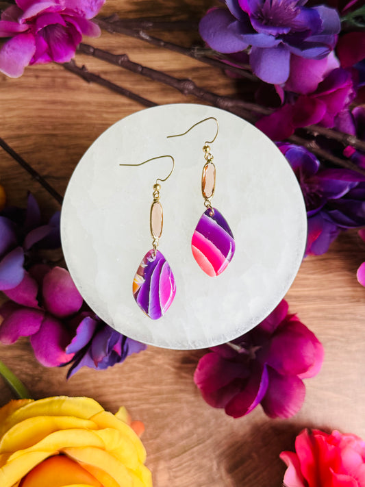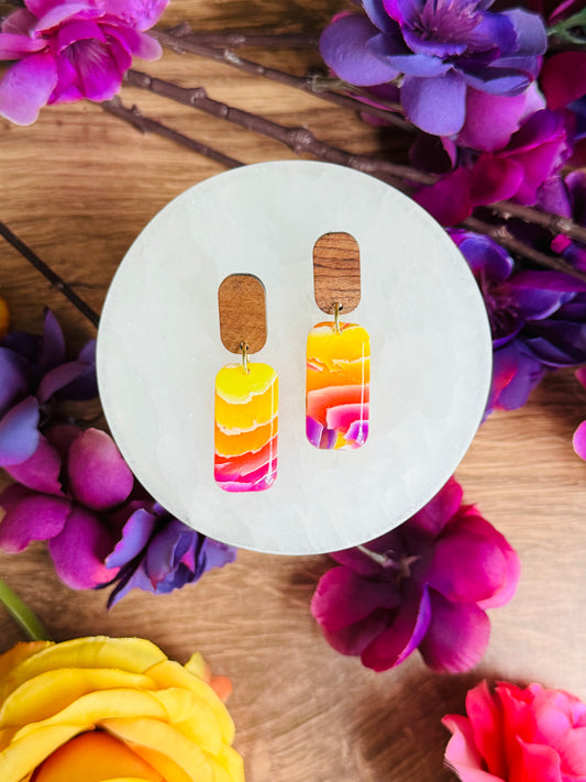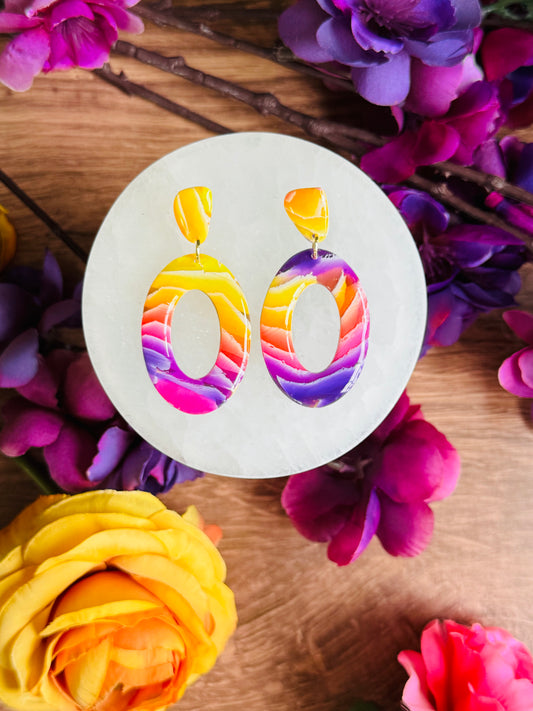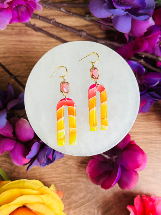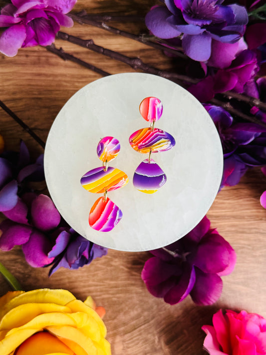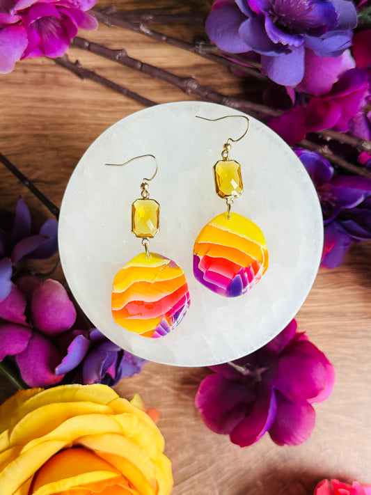 Sunset Vibes - Oblong Pebble & Gem Earrings