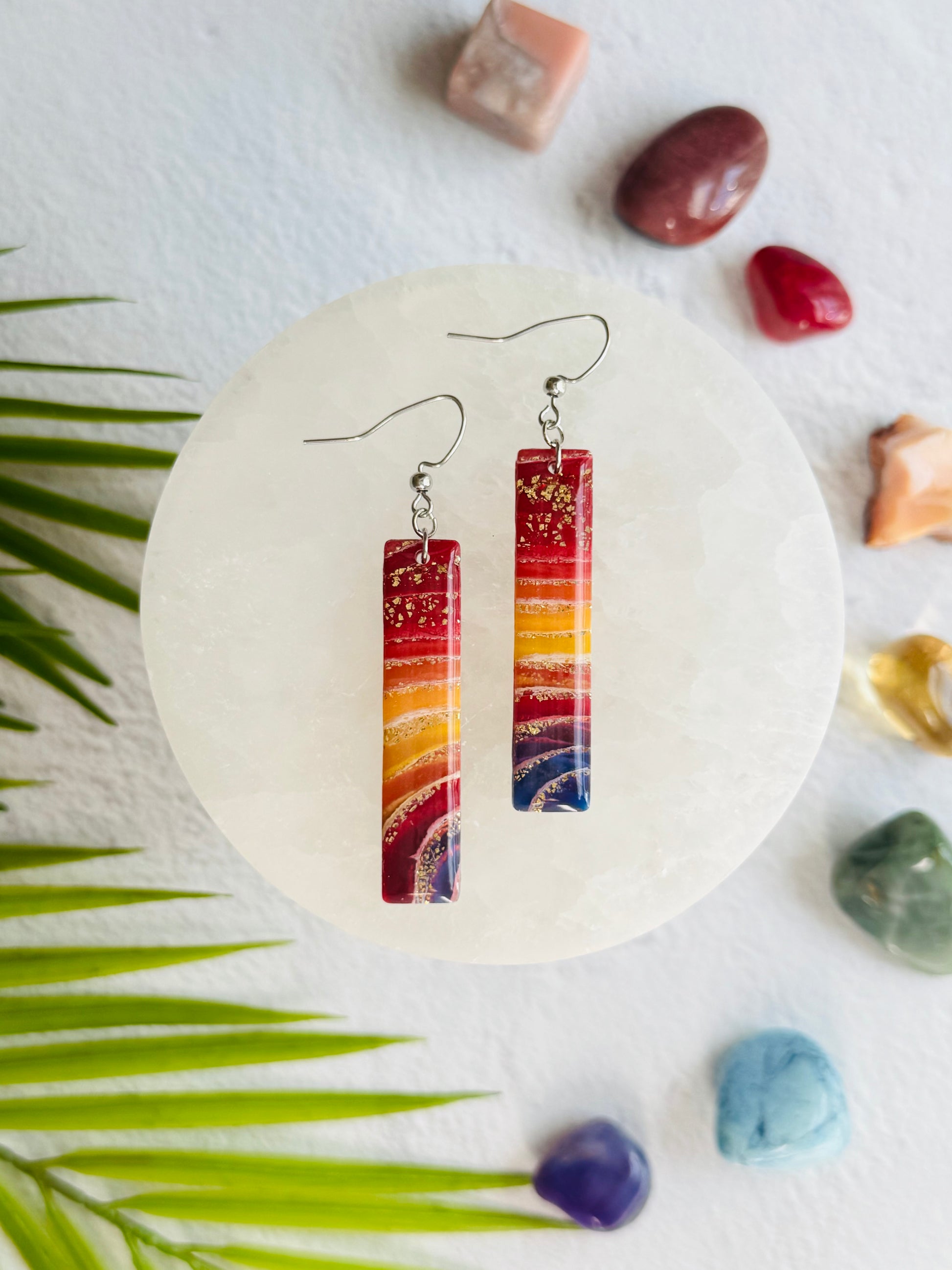 Long rectangle earring, with and without gem connectors, on a classic gold (gold alloy-plated) or silver (rhodium plated) nickel-free fishhook.