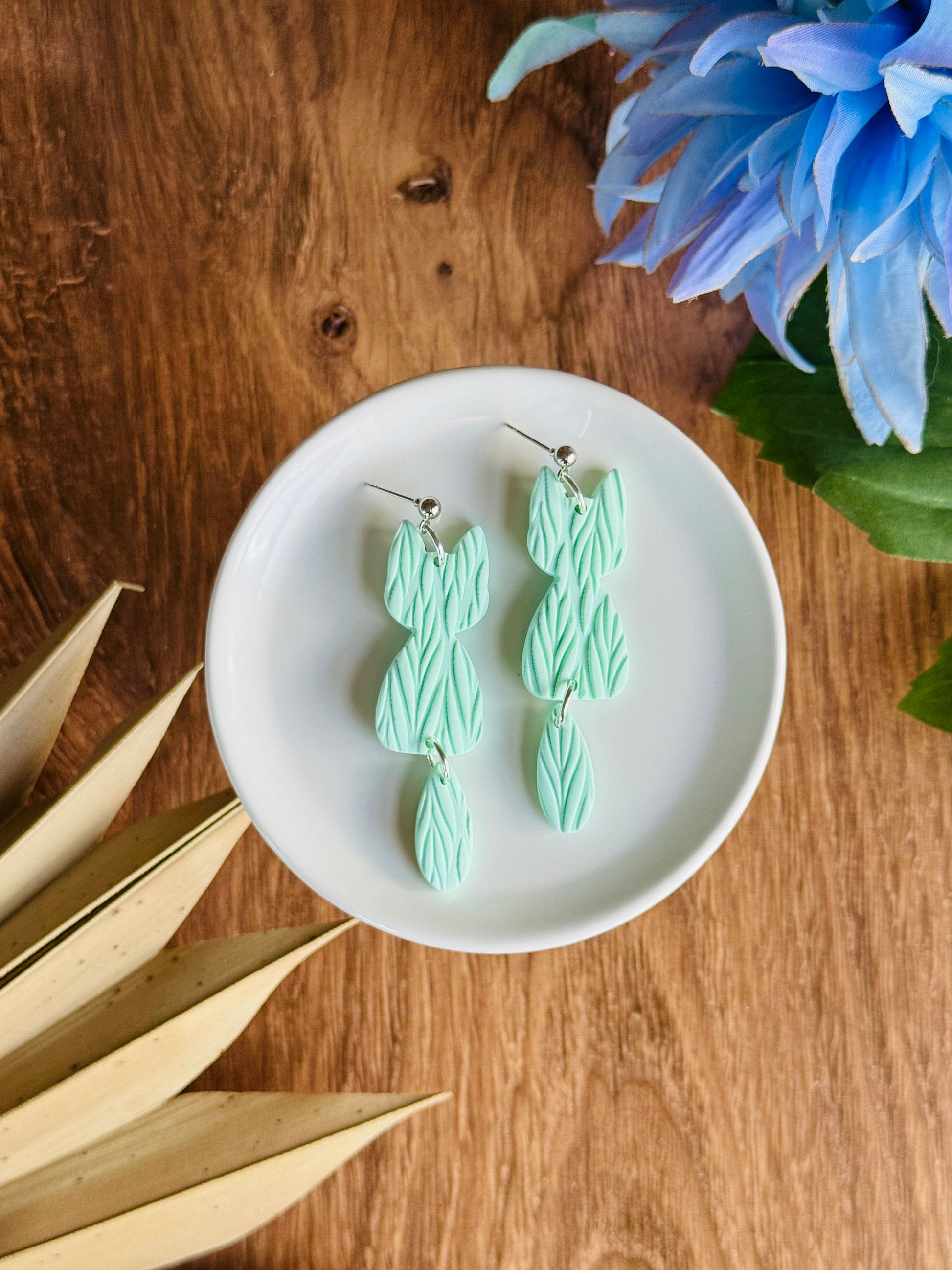 Knit textured cat dangle earrings, in various colors. Available on silver classic fishhooks or silver ball posts. (Rhodium plated, nickel free hooks & posts.)